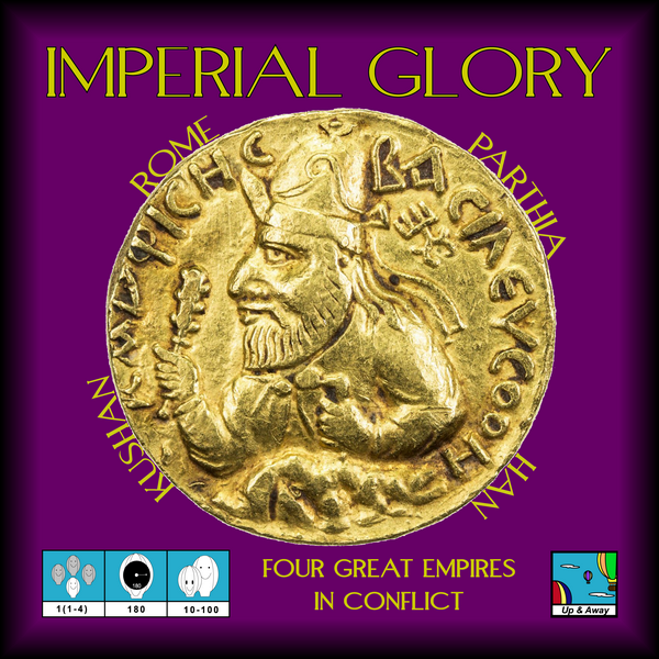 The Imperial Glory period (50-220 CE) was entirely new for Eurasia. For the first time, most of the civilized world was dominated by one of four massive empires that bestrode the earth. This first installment of a three-part game depicts Central Asia and India, where the Kushans had consolidated power and were set to drive south to build their empire. In a deckbuilding system, the player has a deck of advisors including generals, diplomats, architects, agents, and more, each allowing distinct actions. Player can accept the initial draw, or spend influence to push their luck for a card they prefer. In the case of invasion, an elaborate sequence plays out on the Battle Board using a brand new combat system. Features named emperors with historical stats, many army types, unrest, rebellion, civil wars, heresy, pandemic, trade, temples, monuments, aqueducts, roads, and more. Solitaire-only now, with multi-player options to come. Shop page | Home | Rules |