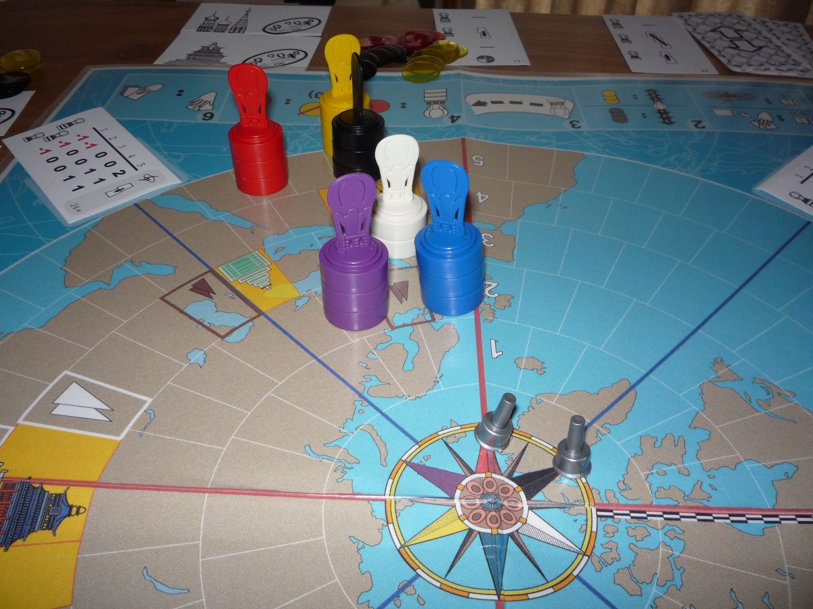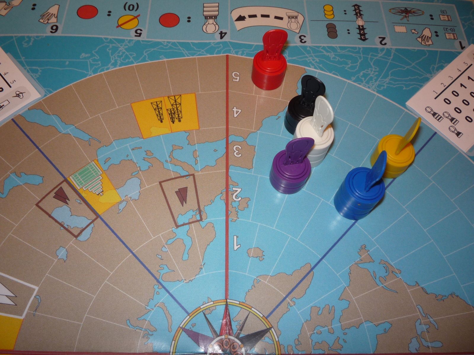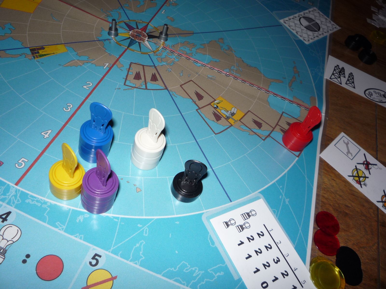 Black is forced to move south leaving Red in a clear lead as he sights the coasts of North America. All the rest have yet to see Hawaii.