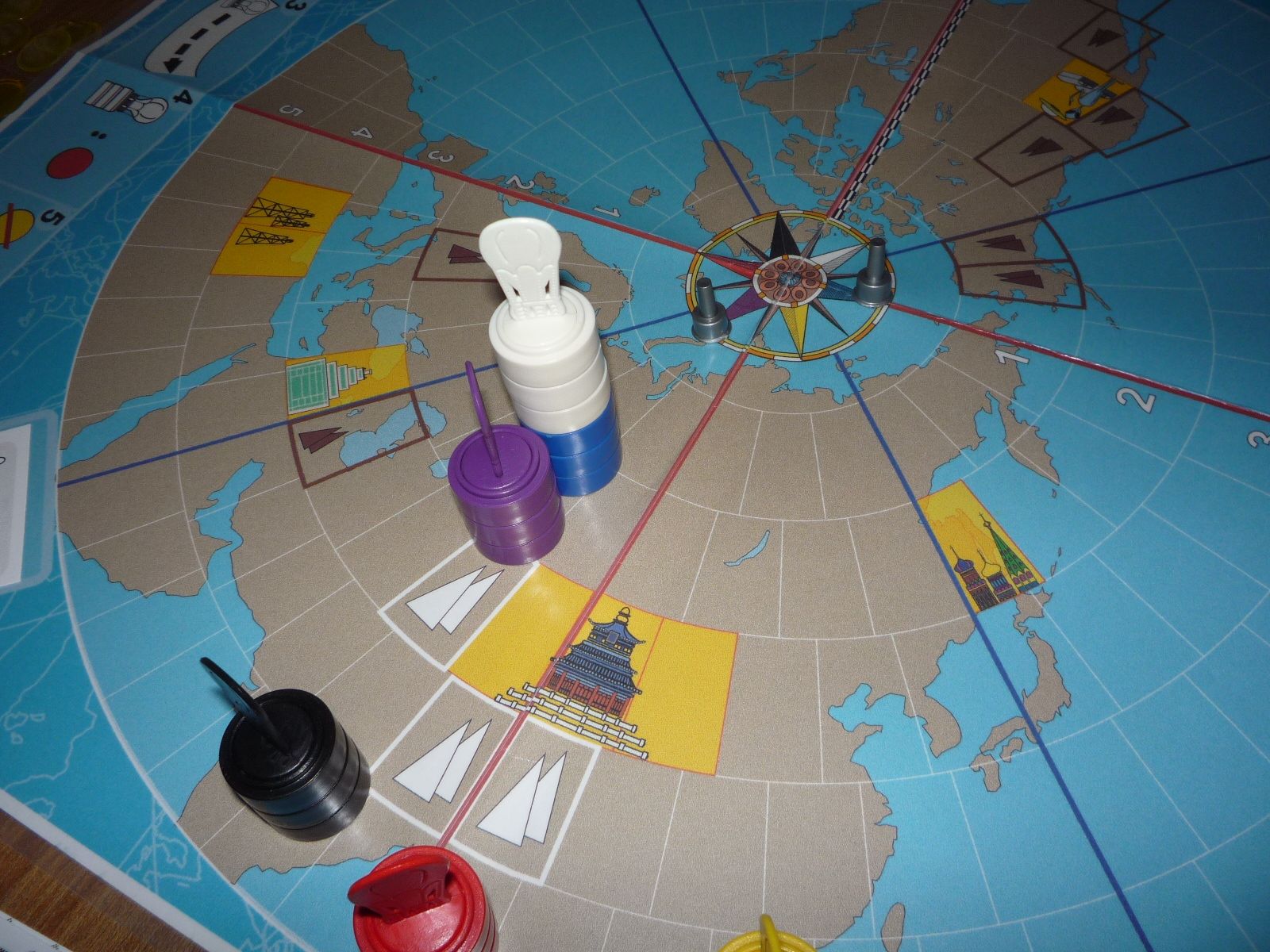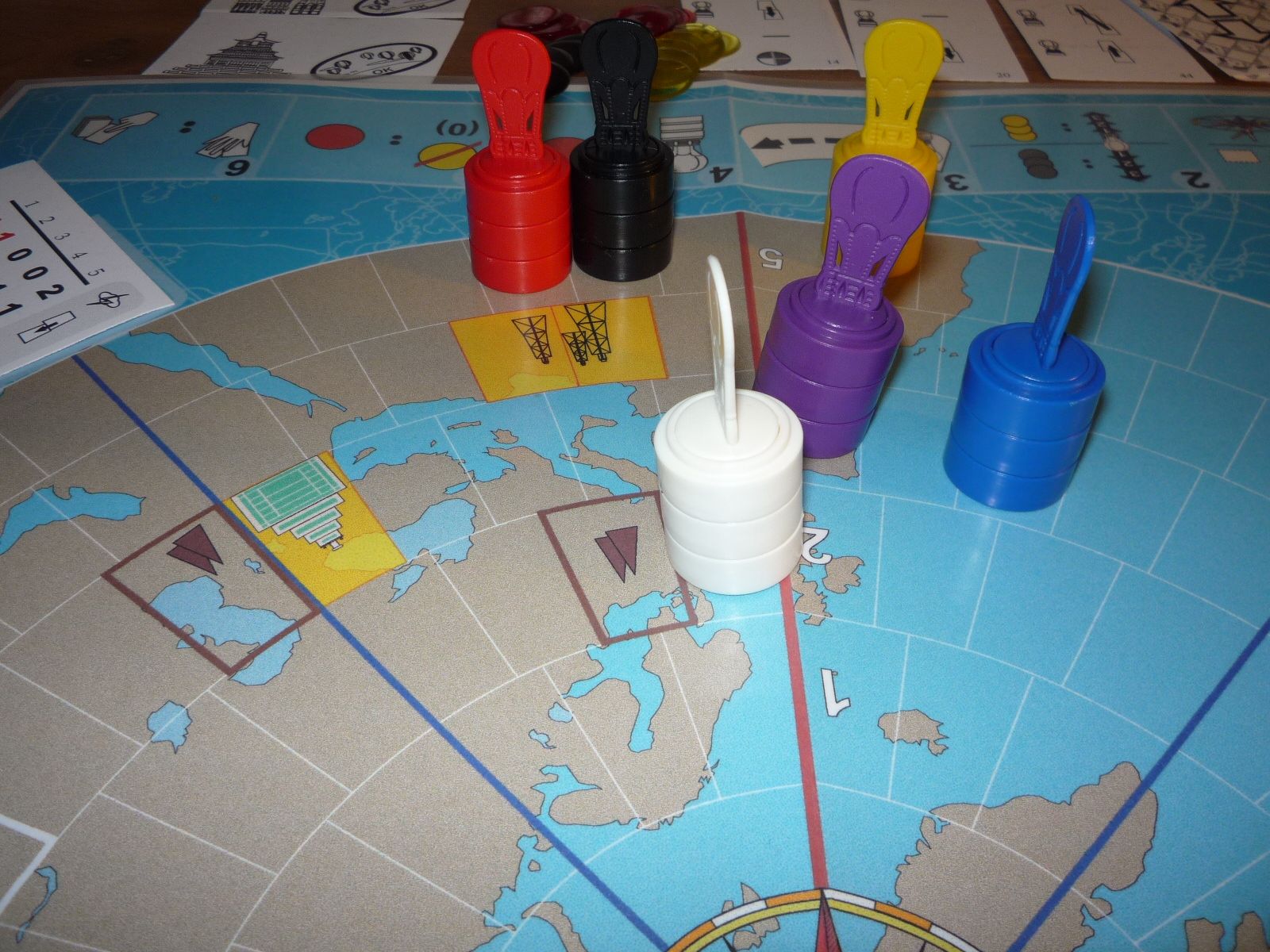 Oh no! Red has planned poorly and was forced to move north. Even worse, this landed him in Area 51! where he'll be spending quite some time explaining himself. But it's his own fault. Meanwhile the others save Purple have come on strong.